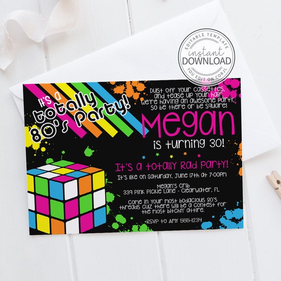 What to do for a 80th birthday celebration? Call it "18+62 years of experience" or "aged to perfection," but "80 and excellent" definitely qualifies a person for a celebration! Vistaprint.com has been visited by 100k+ users in the past month Order invitations and if the date (or venue) changes we will reprint your order free. 80s birthday invitation, 80s theme invitation, 80s invitation, back to the 80s, 80s birthday party, 80s birthday party invitation, editable.