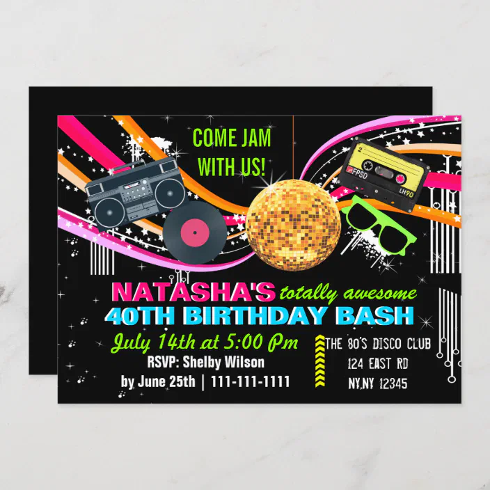 Create 80's birthday party invitation for any occasion. Order invitations and if the date (or venue) changes we will reprint your order free. 100% guaranteed & fast shipping! When should i give out birthday party invitations? Baby, birthday, business, holiday, wedding events, religious Along with the 80s party invitation designs in our marketplace, you also have the option to choose the paper style and other elements to match your vision. 80s birthday invitation, 80s theme invitation, 80s invitation, back to the 80s, 80s birthday party, 80s birthday party invitation, editable. All custom made · upload/sell your artwork · easy to personalise The zazzle marketplace has 80s party invitation designs from amazing designers starting as low as $1.20. Discover amazing designs or create today! What to say on birthday invitations? Heavyweight cardstock adds instant elegance to your greetings. What to do for a 80th birthday celebration?